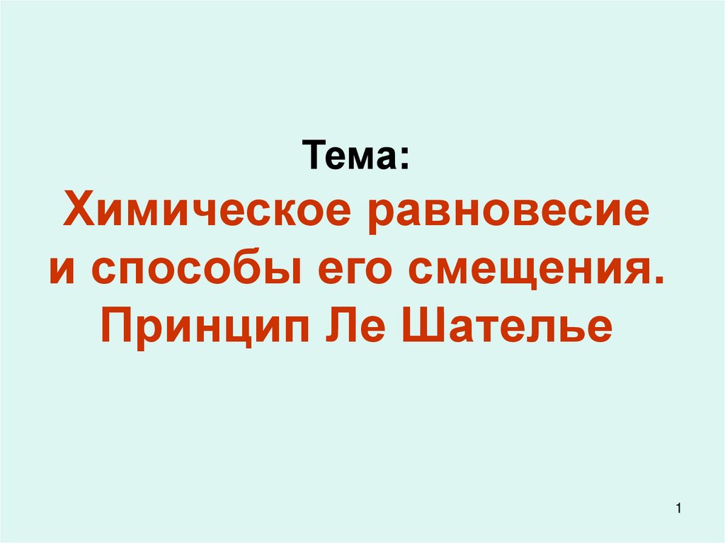 Равновесие – состояние системы, при которой еепараметры (температура, давление, концентрация реагентов и