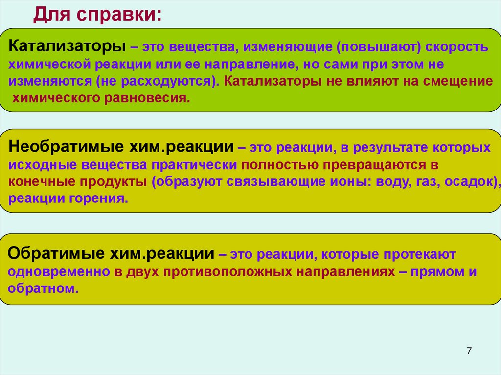 Для справки:Катализаторы – это вещества, изменяющие (повышают) скорость