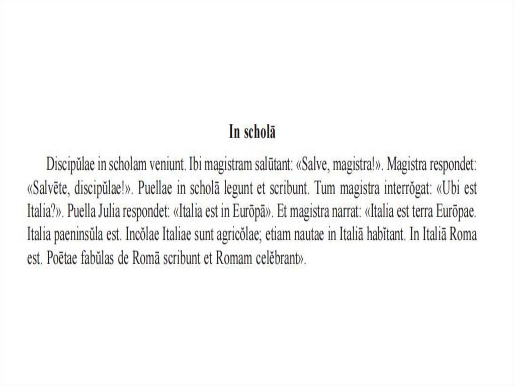 Discipŭlae in scholam veniunt. Ibi magistramsalūtant: «Salve, magistra!» Magistra respondet: