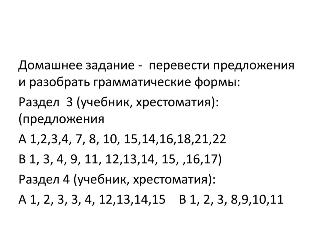 Домашнее задание - перевести предложенияи разобрать грамматические формы: