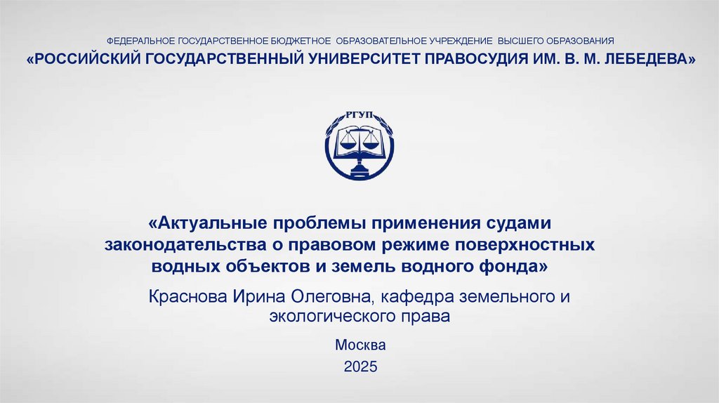 ФЕДЕРАЛЬНОЕ ГОСУДАРСТВЕННОЕ БЮДЖЕТНОЕ ОБРАЗОВАТЕЛЬНОЕ УЧРЕЖДЕНИЕ ВЫСШЕГО ОБРАЗОВАНИЯ«РОССИЙСКИЙ ГОСУДАРСТВЕННЫЙ УНИВЕРСИТЕТ ПРАВОСУДИЯ ИМ. В. М. ЛЕБЕДЕВА»