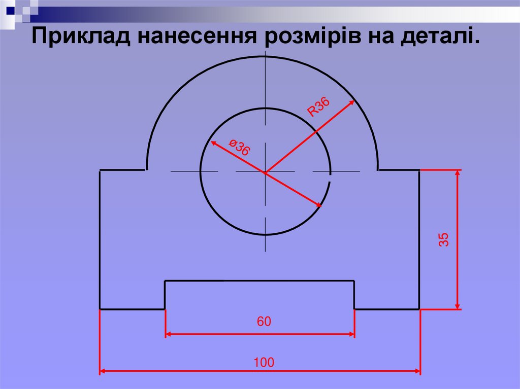 Приклад нанесення розмірів на деталі.60