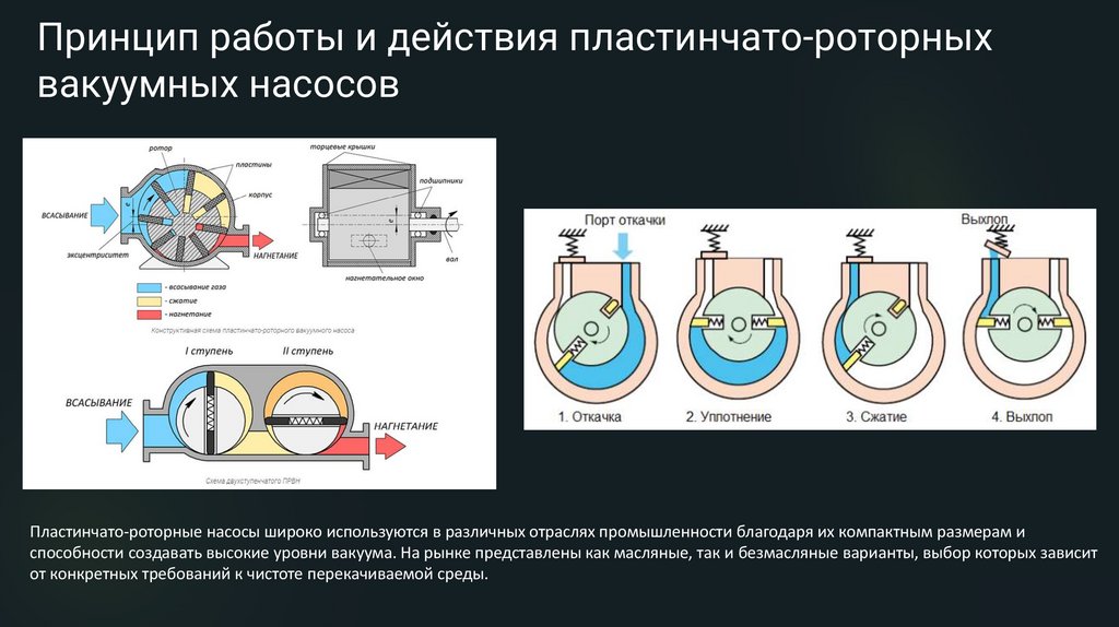 Принцип работы и действия пластинчато-роторныхвакуумных насосов