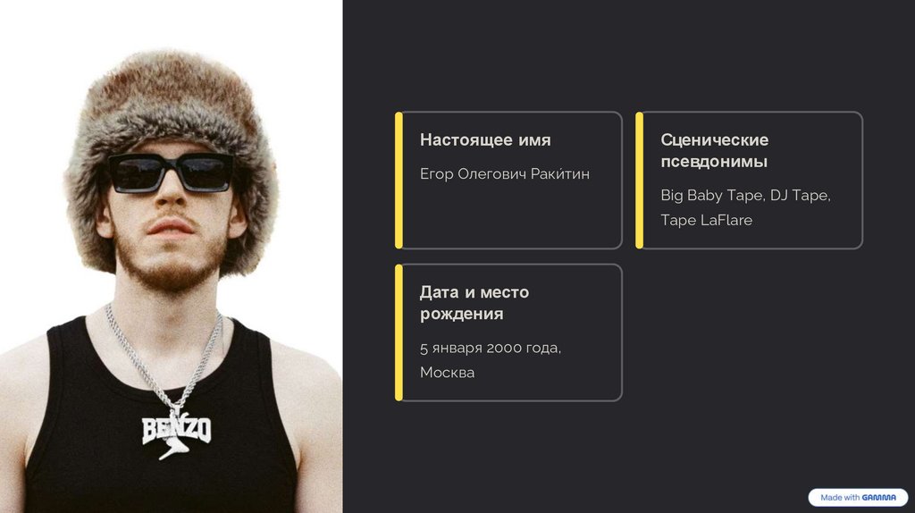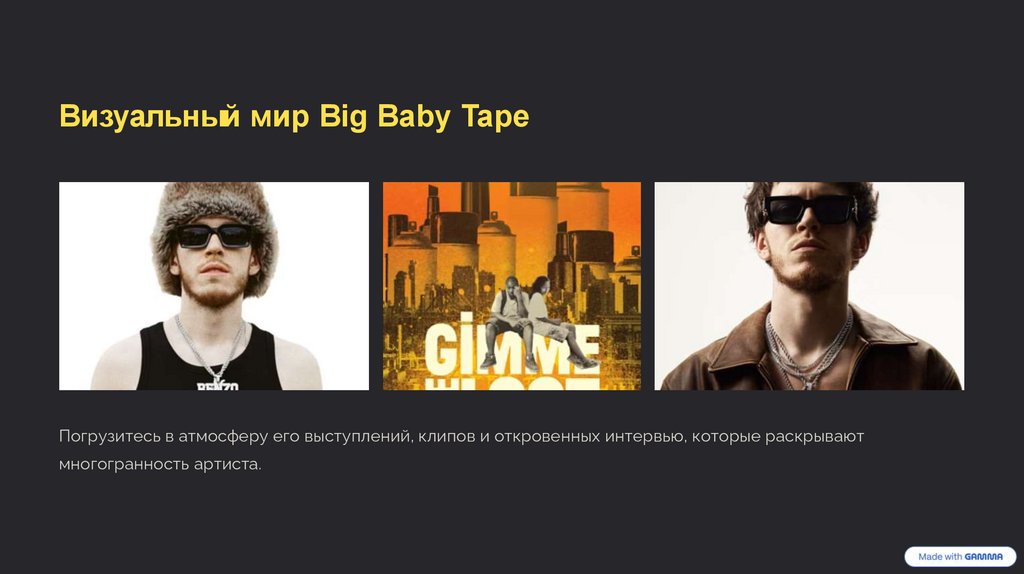 Визуальный мир Big Baby TapeПогрузитесь в атмосферу его выступлений, клипов и откровенных интервью, которые раскрывают