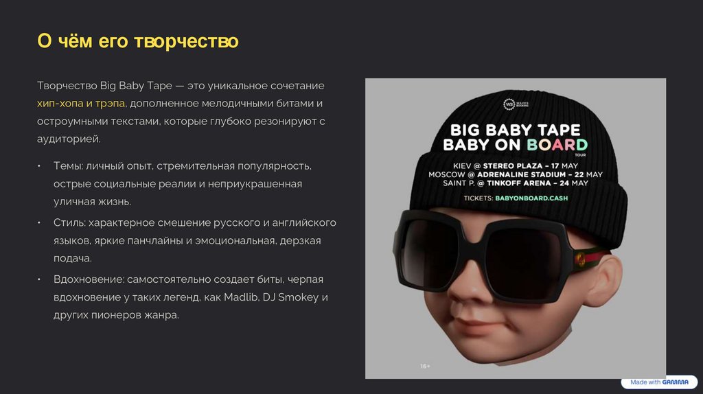 О чём его творчествоТворчество Big Baby Tape — это уникальное сочетание