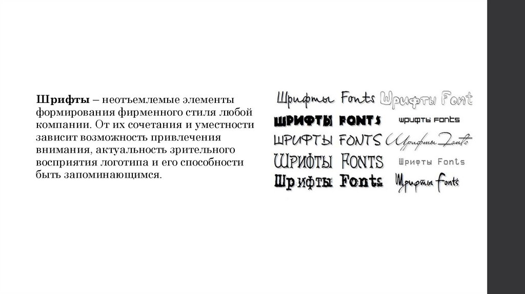 Шрифты – неотъемлемые элементыформирования фирменного стиля любой