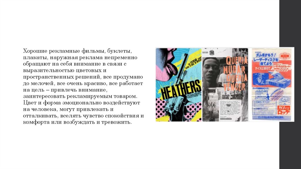 • визуальная активность – адекватность эмоциональночувственному восприятию человека, толчок к обостренной