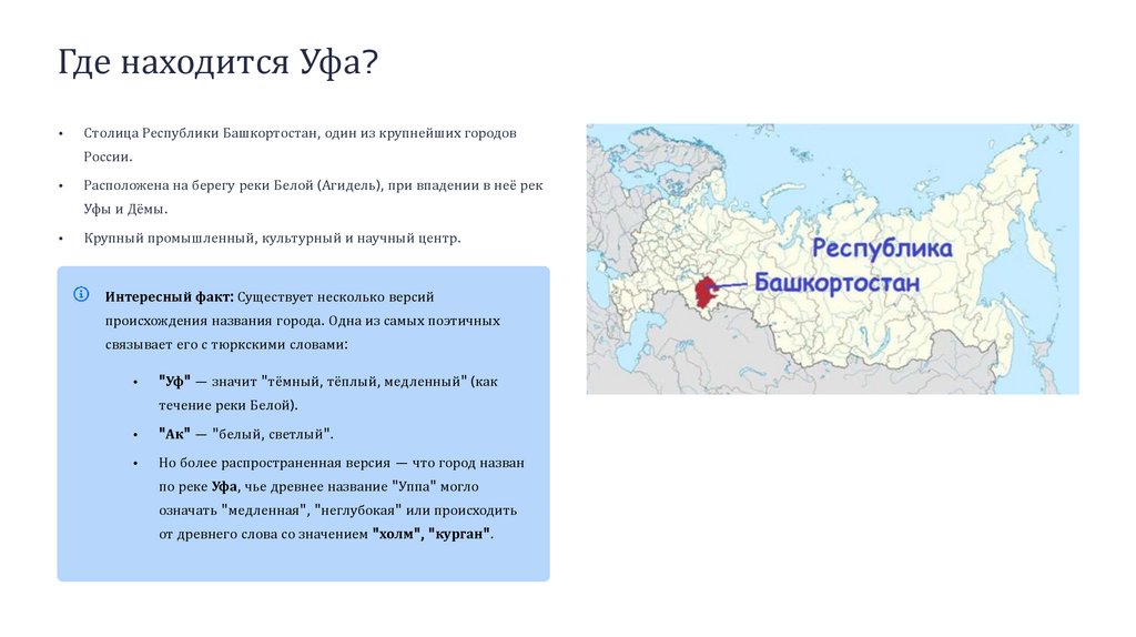 Где находится Уфа?Столица Республики Башкортостан, один из крупнейших городов