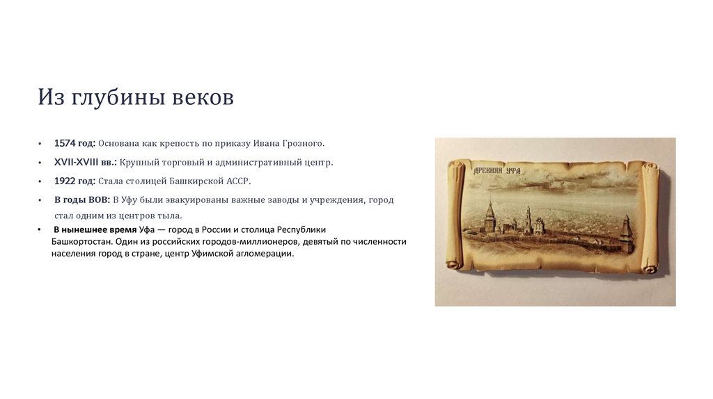 Из глубины веков1574 год: Основана как крепость по приказу Ивана Грозного.