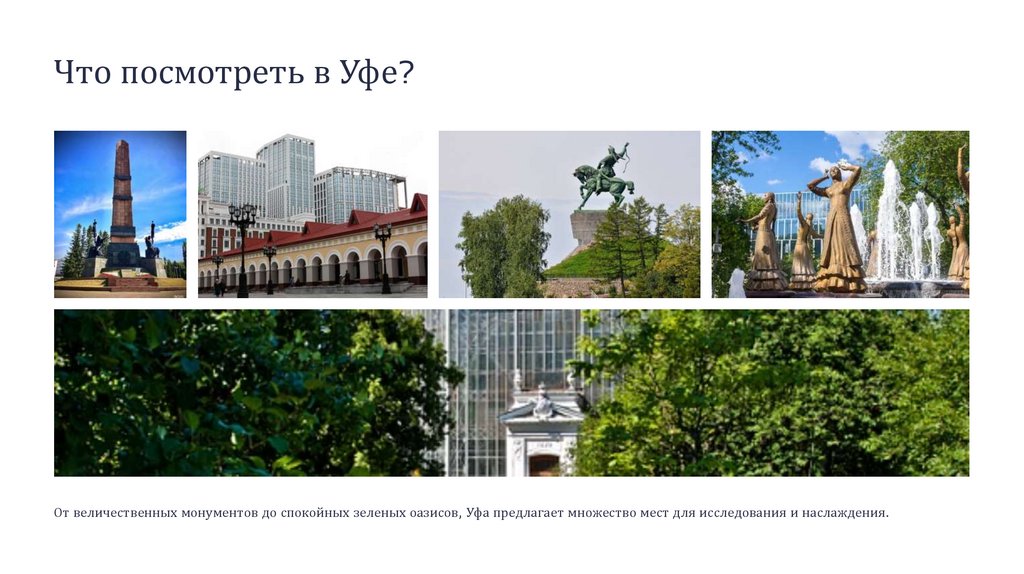 Что посмотреть в Уфе?От величественных монументов до спокойных зеленых оазисов, Уфа предлагает множество мест для исследования и наслаждения.