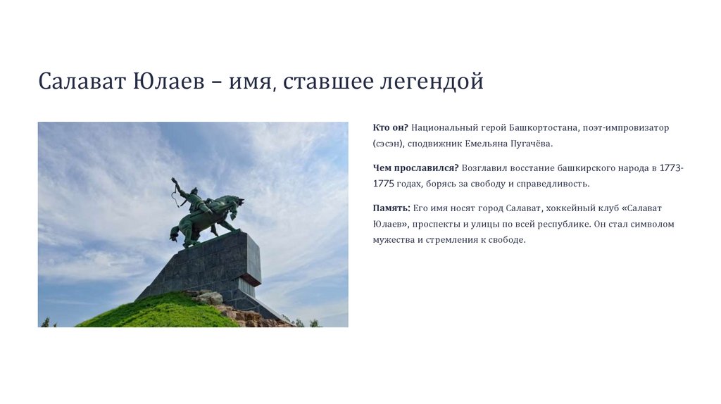 Чем прославился? Возглавил восстание башкирского народа в 17731775 годах, борясь за свободу и справедливость.