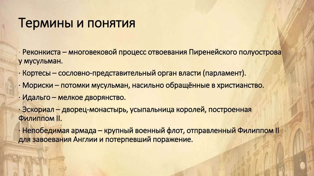 Термины и понятия· Реконкиста – многовековой процесс отвоевания Пиренейского полуострова