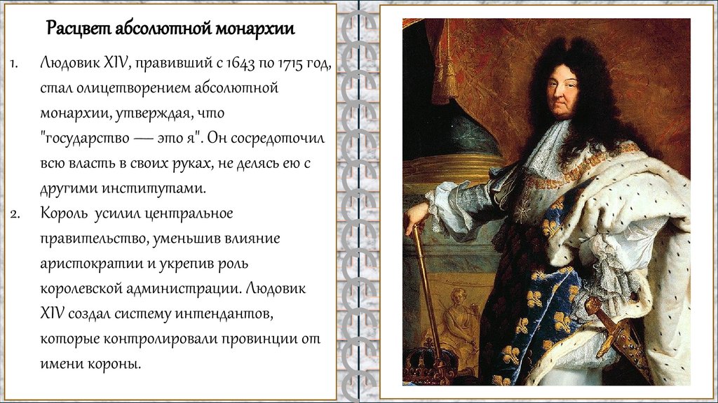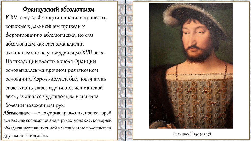 Французский абсолютизмК XVI веку во Франции начались процессы,