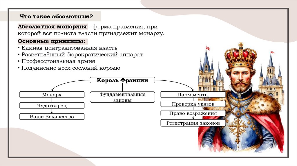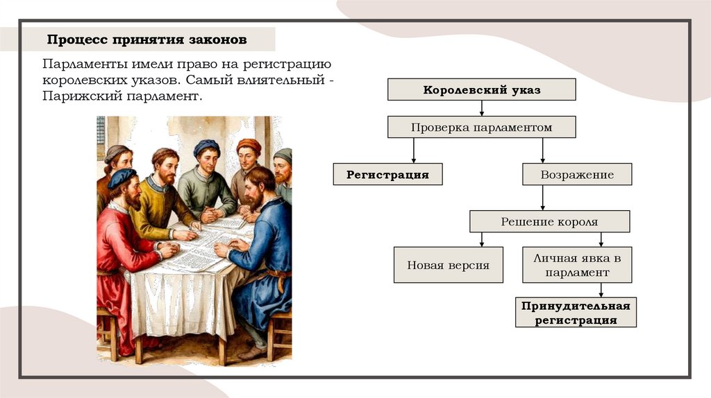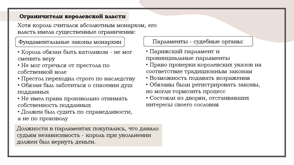 Ограничители королевской властиХотя король считался абсолютным монархом, его