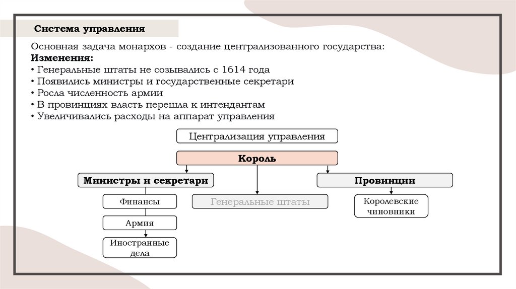 Система управленияОсновная задача монархов - создание централизованного государства: