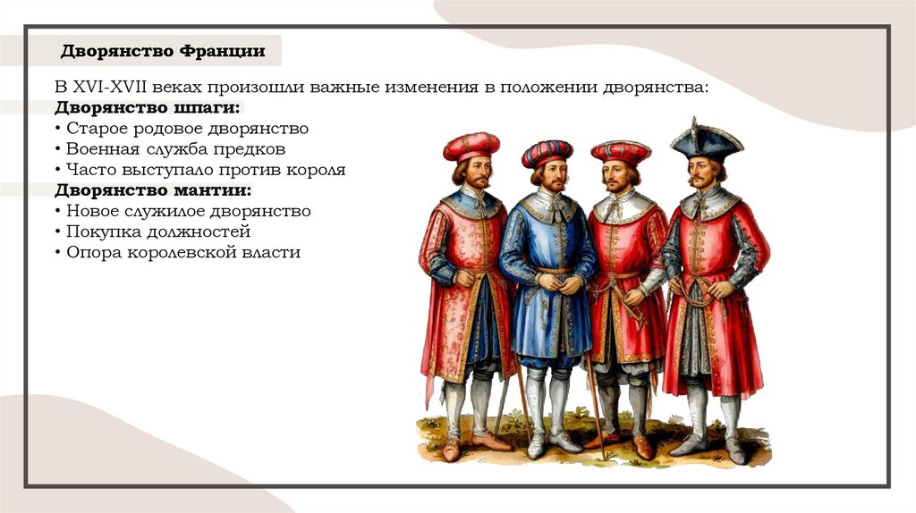 Дворянство ФранцииВ XVI-XVII веках произошли важные изменения в положении дворянства: