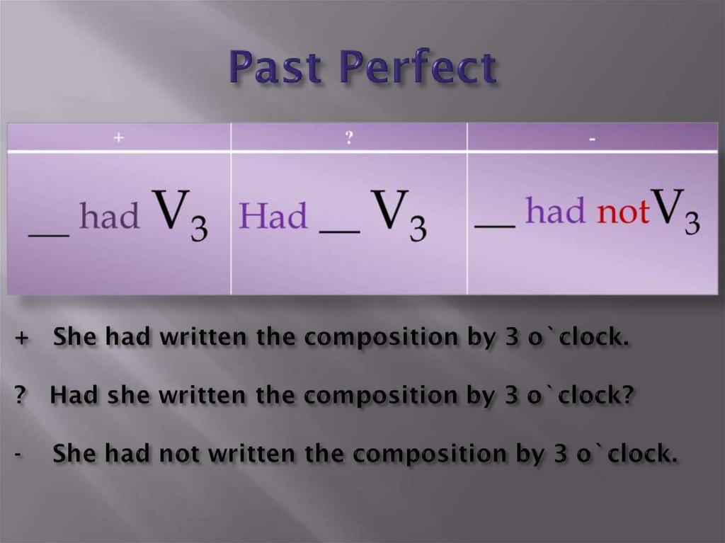 Прошедшее завершённое времяhad + V3