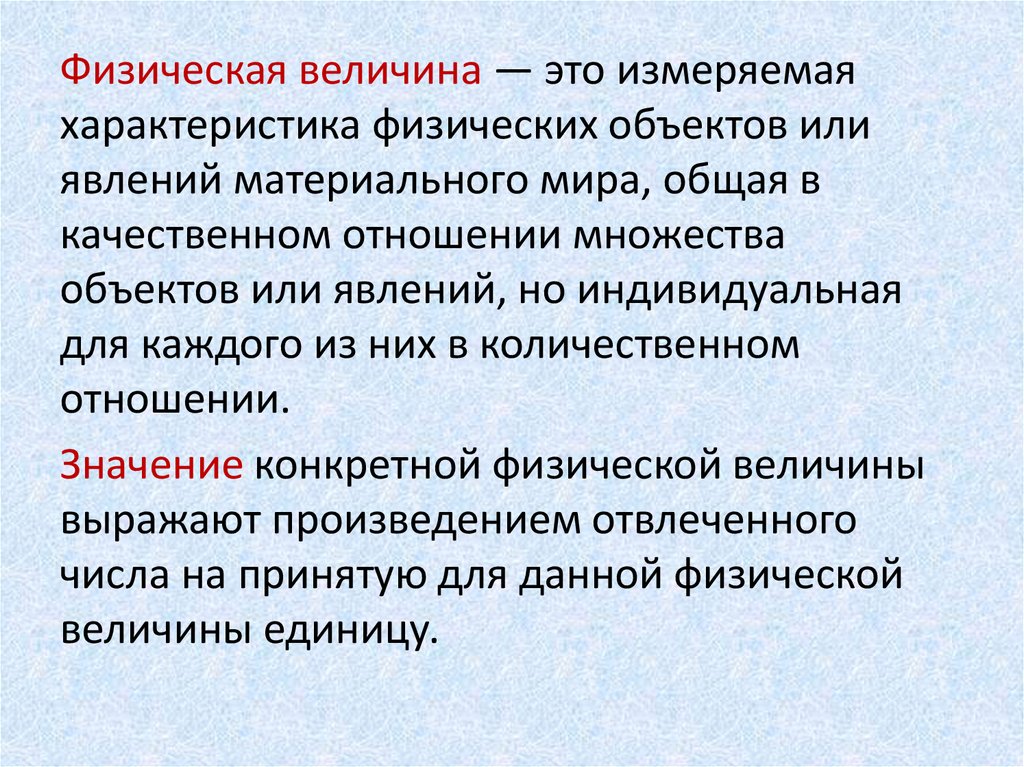 Физическая величина — это измеряемаяхарактеристика физических объектов или