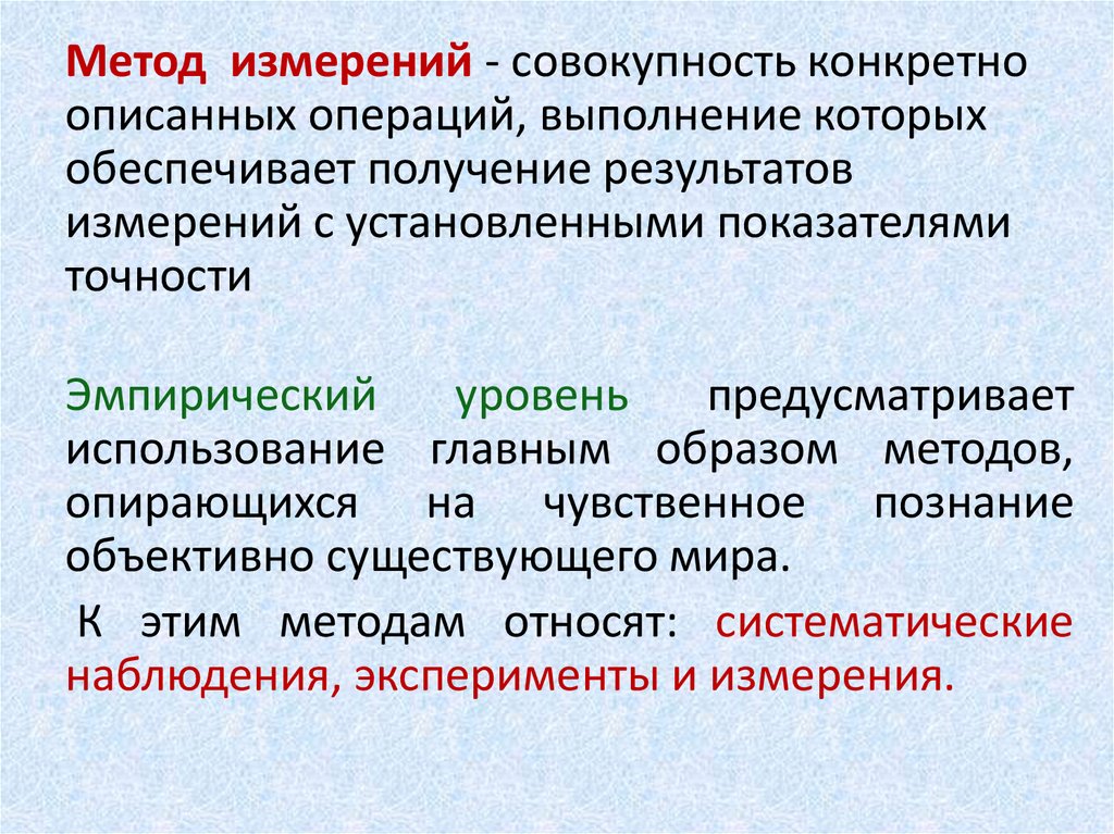 Метод измерений - совокупность конкретноописанных операций, выполнение которых