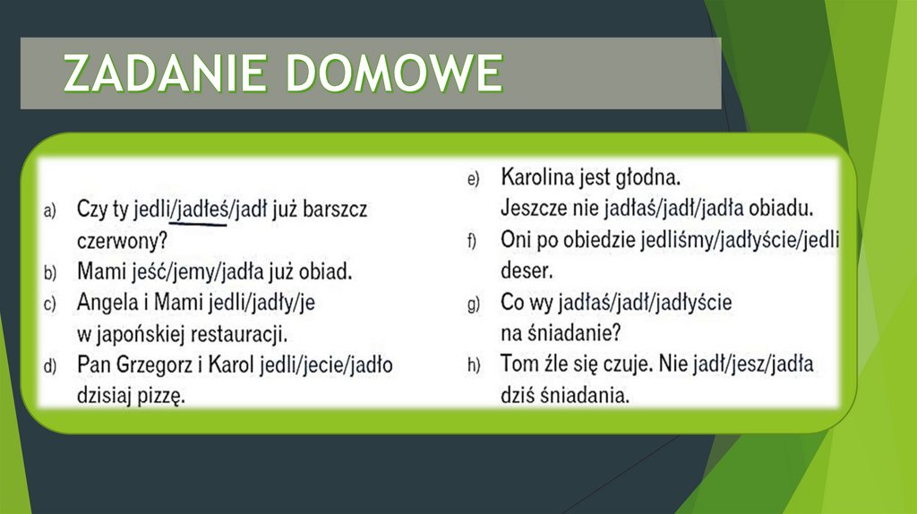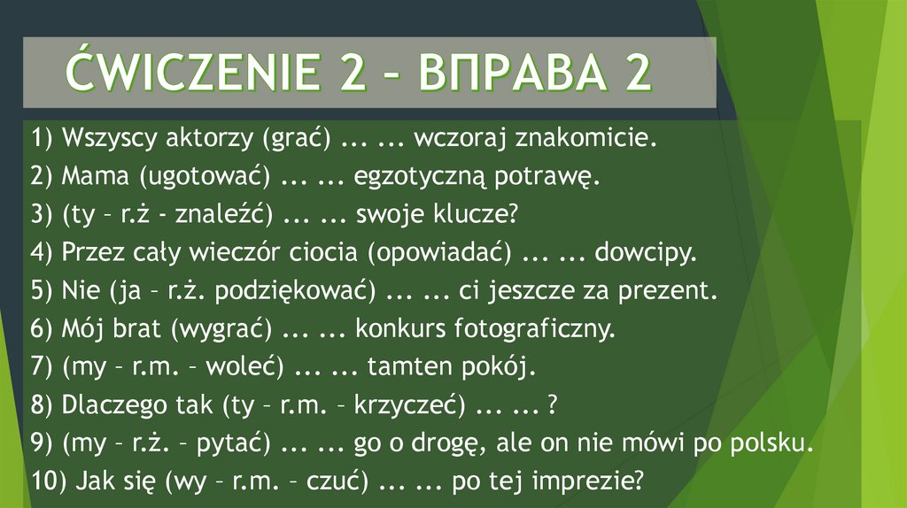 1) Wszyscy aktorzy (grać) ... ... wczoraj znakomicie.2) Mama (ugotować) ... ... egzotyczną potrawę.