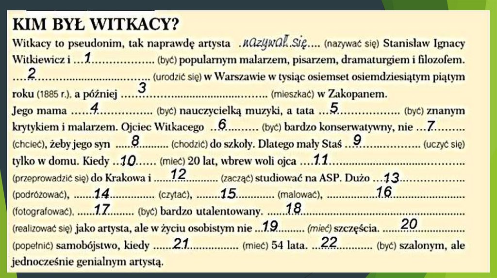 4) Przez cały wieczór ciocia (opowiadać) ... ... dowcipy.