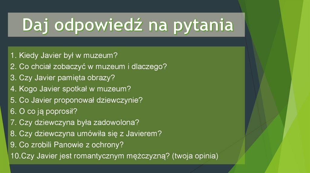 1. Kiedy Javier był w muzeum?2. Co chciał zobaczyć w muzeum i dlaczego?