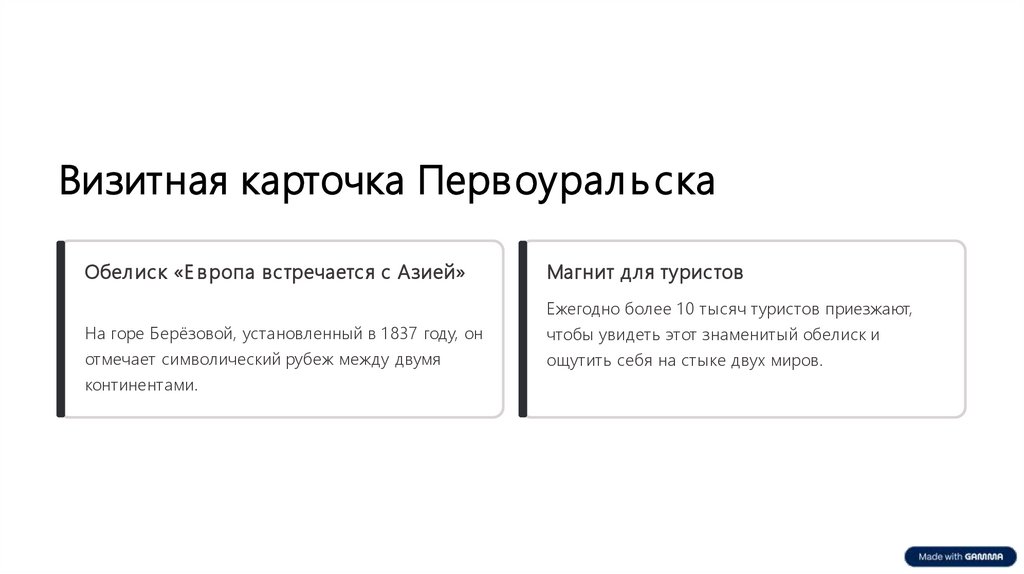 Визитная карточка Первоурал ь скаОбел иск «Е в ропа встречается с Азией»