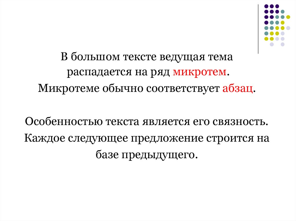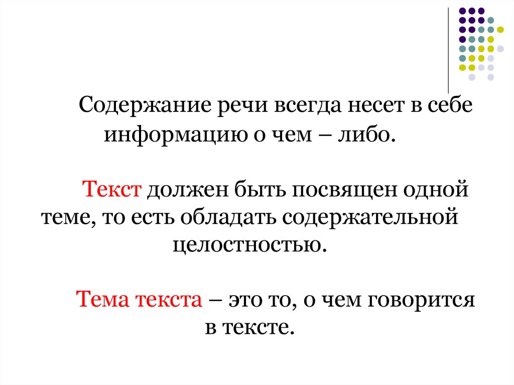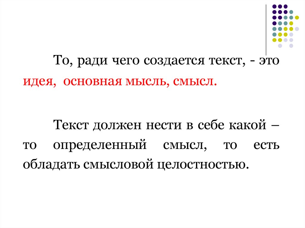 То, ради чего создается текст, - этоидея, основная мысль, смысл.