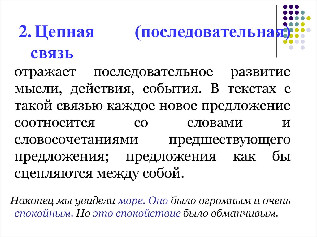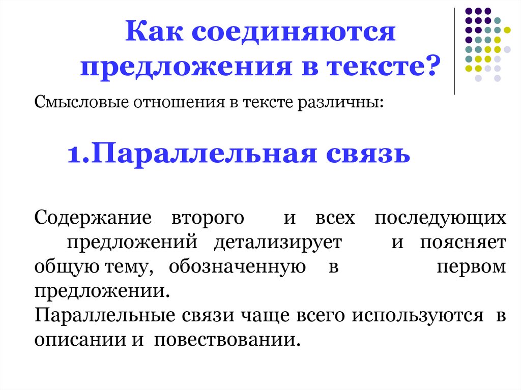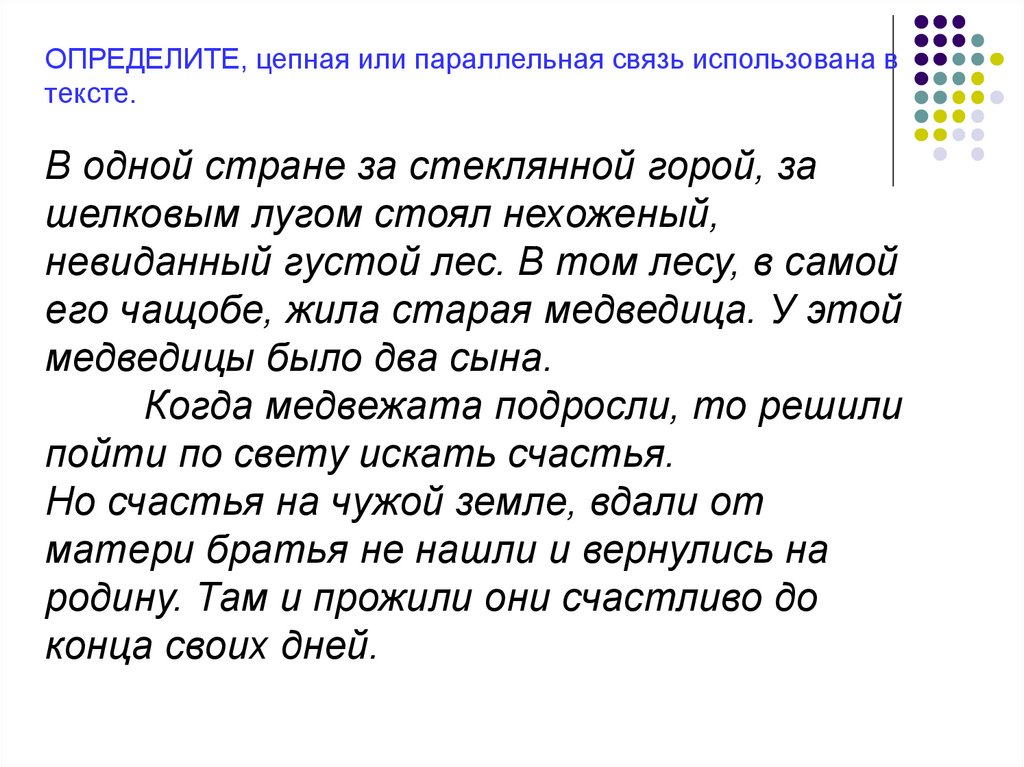ОПРЕДЕЛИТЕ, цепная или параллельная связь использована втексте.