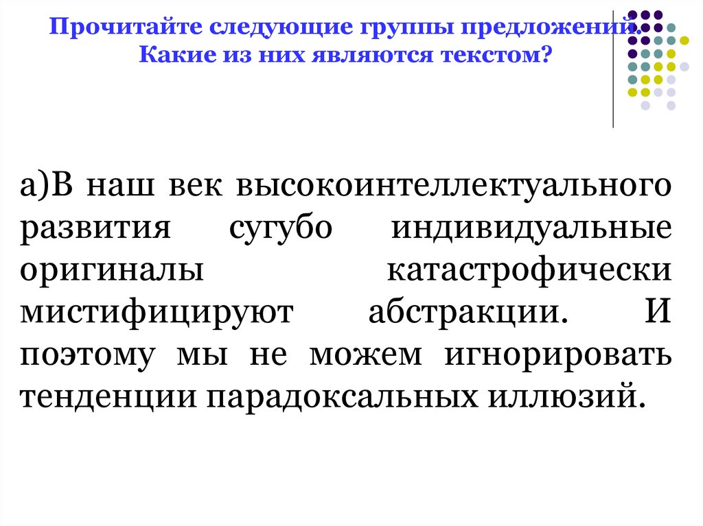 Прочитайте следующие группы предложений.Какие из них являются текстом?