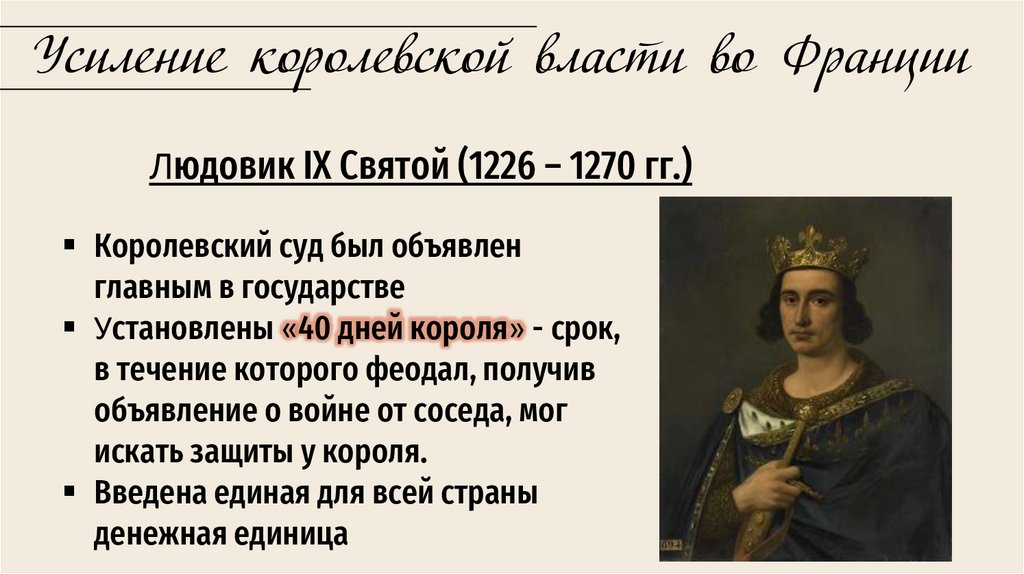 Усиление королевской власти во ФранцииЛюдовик IX Святой (1226 – 1270 гг.)