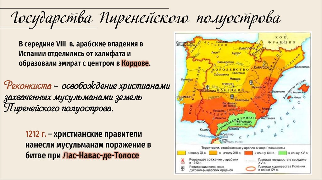 Государства Пиренейского полуостроваВ середине VIII в. арабские владения в