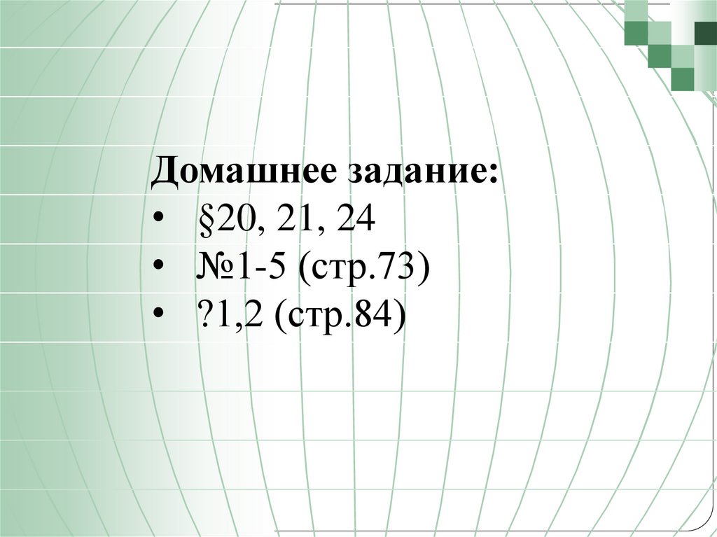 Домашнее задание:• §20, 21, 24