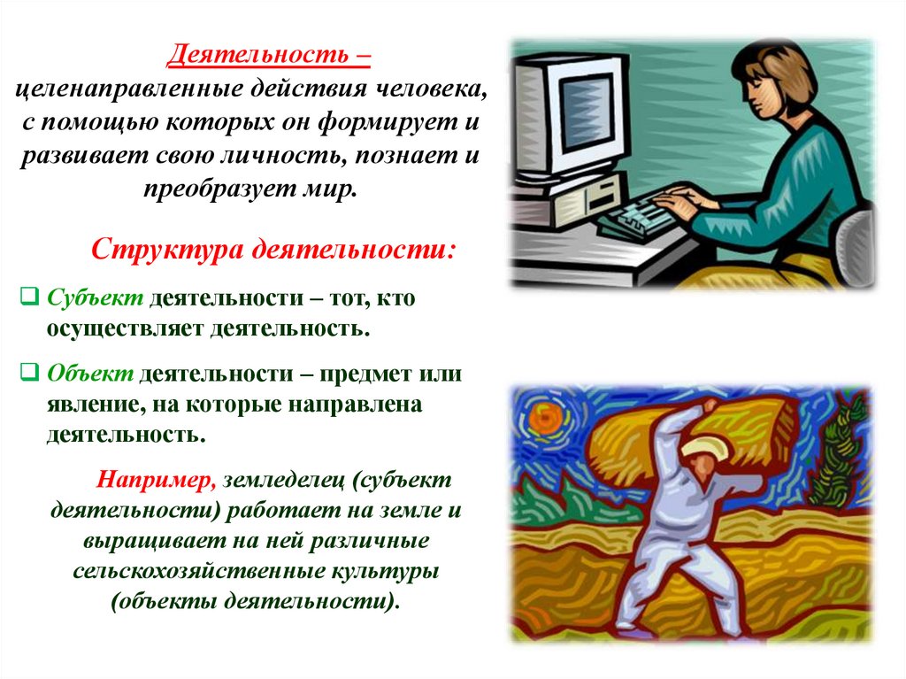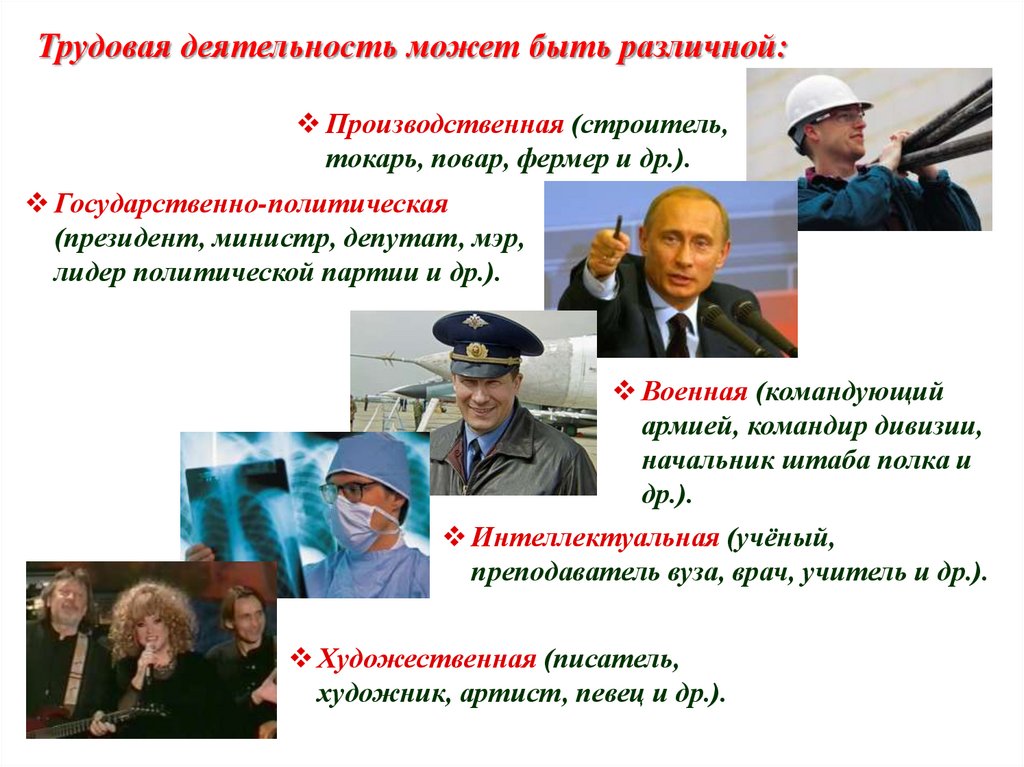 Трудовая деятельность может быть различной:Производственная (строитель,