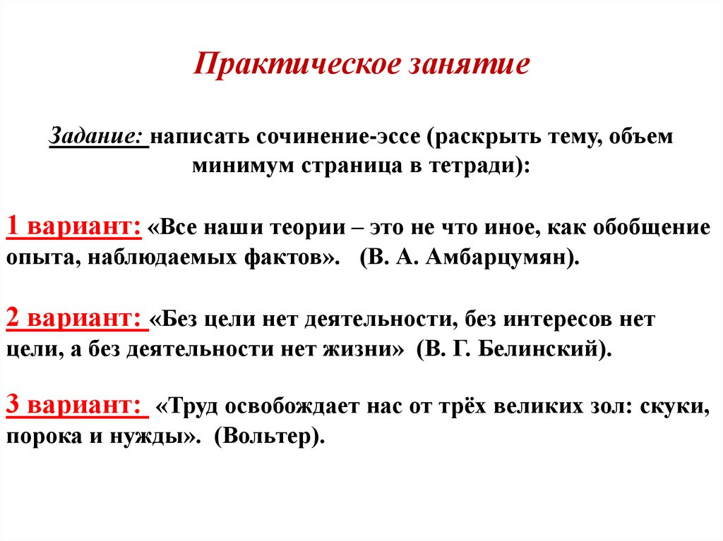 Практическое занятиеЗадание: написать сочинение-эссе (раскрыть тему, объем
