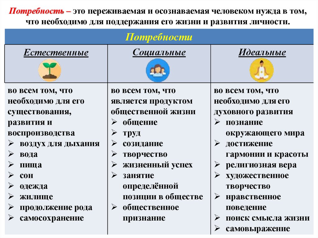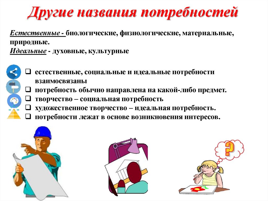 Другие названия потребностейЕстественные - биологические, физиологические, материальные,