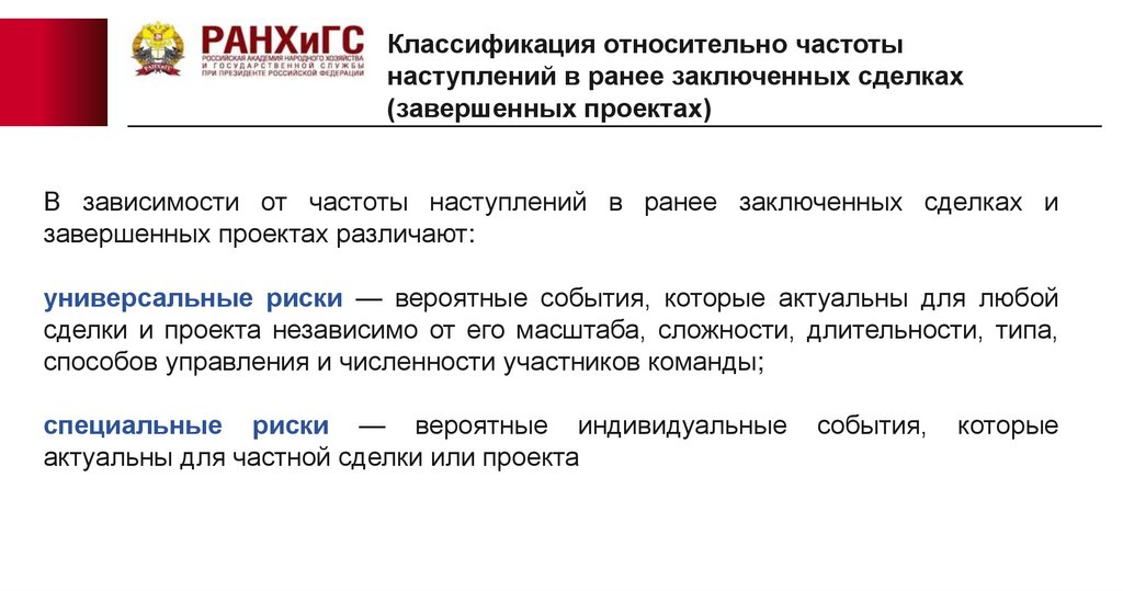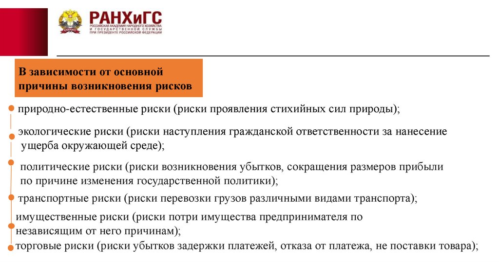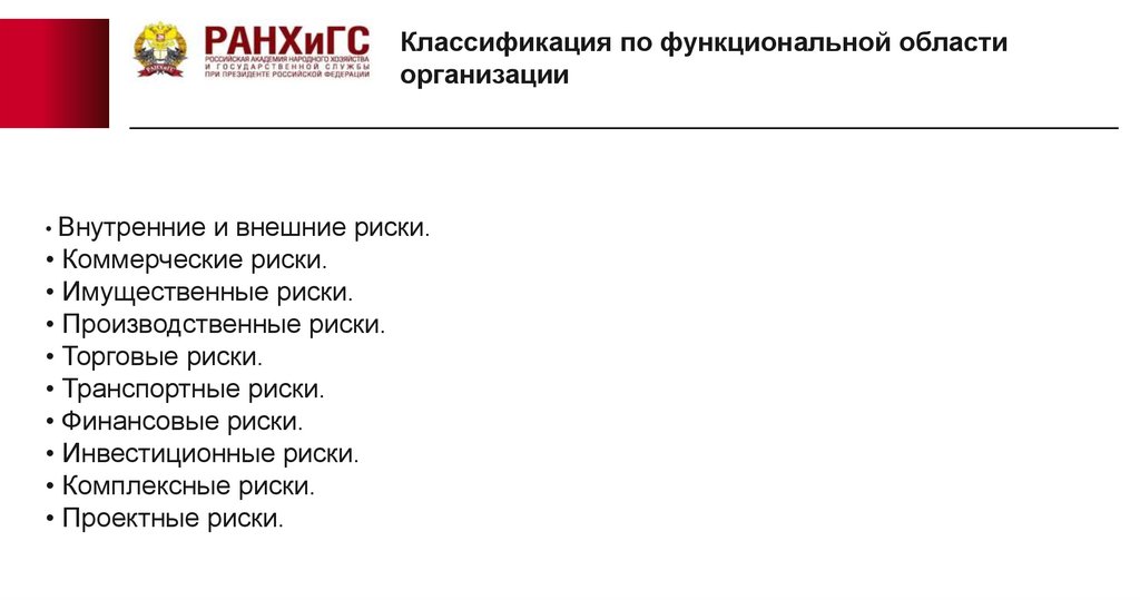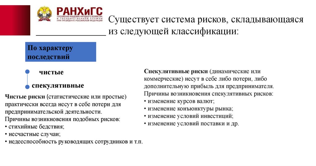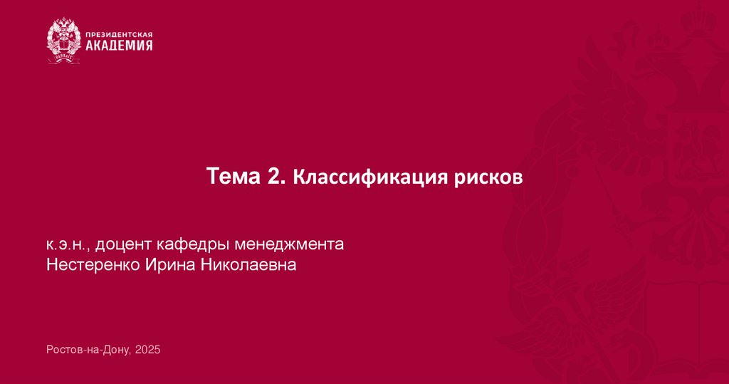 Тема 2. Классификация рисковк.э.н., доцент кафедры менеджмента
