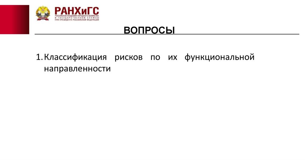 ВОПРОСЫ1.Классификация рисков по их функциональной