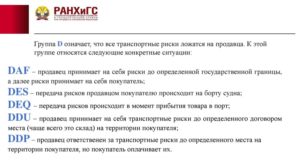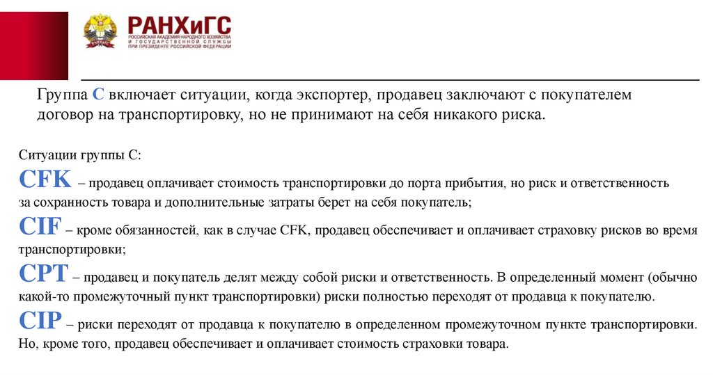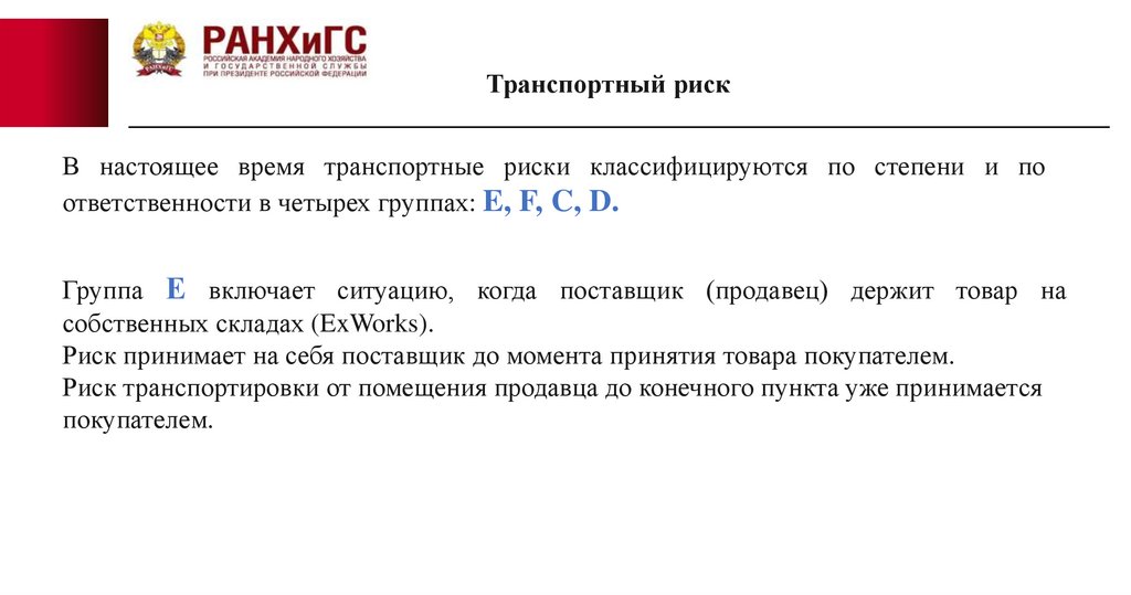 транспортные риски (риски перевозки грузов различными видами транспорта);