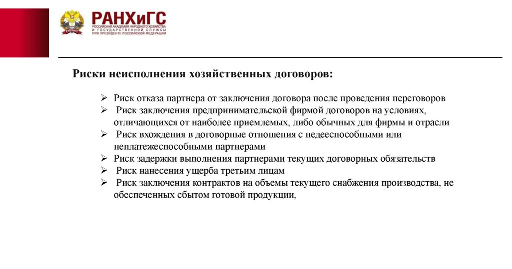 торговые риски (риски убытков задержки платежей, отказа от платежа, не поставки товара);