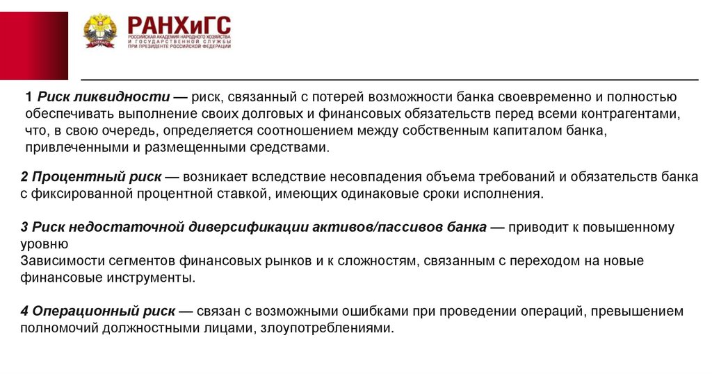 риск ликвидности (риск потерь при операциях с ценными бумагами или другими