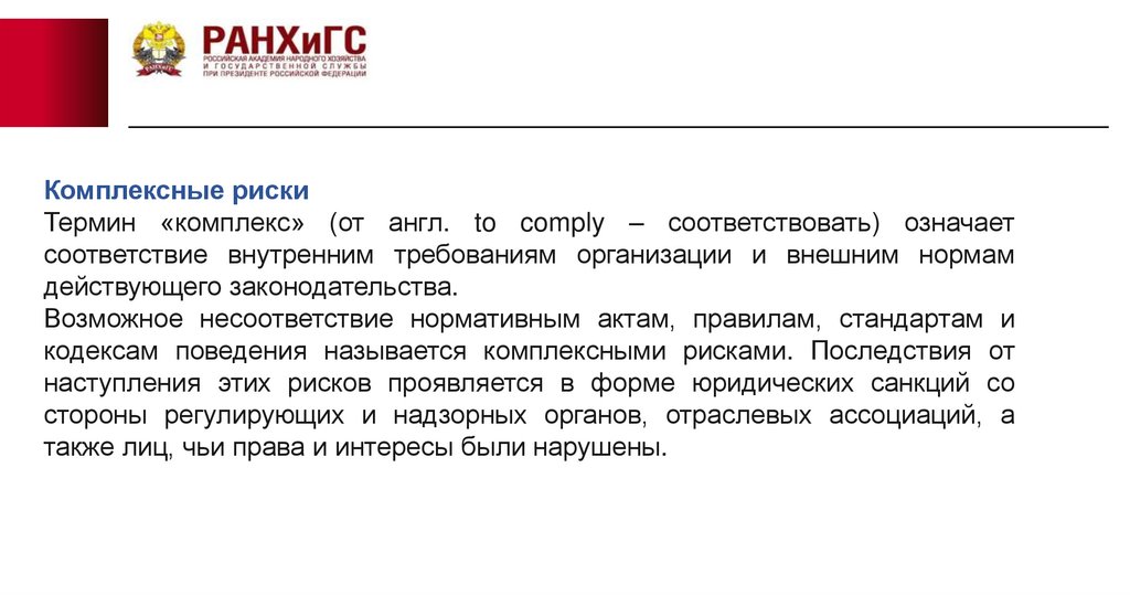 Комплексные рискиТермин «комплекс» (от англ. to comply – соответствовать) означает