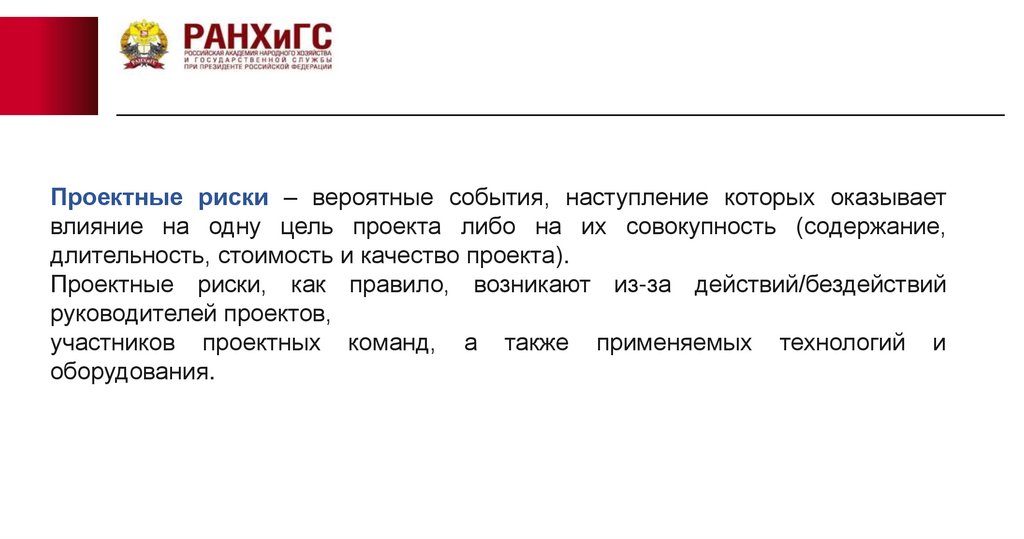Проектные риски, как правило, возникают из-за действий/бездействий