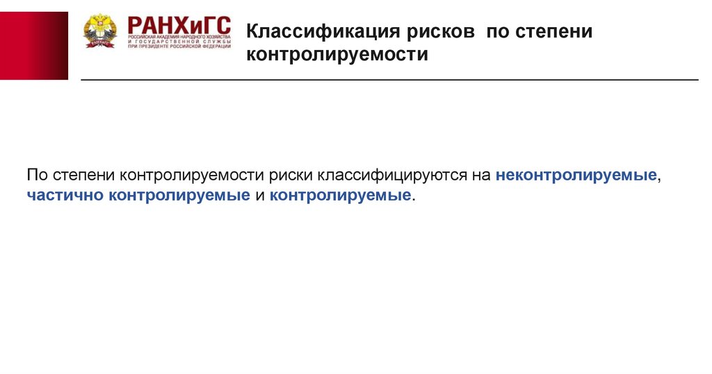 По степени контролируемости риски классифицируются на неконтролируемые,