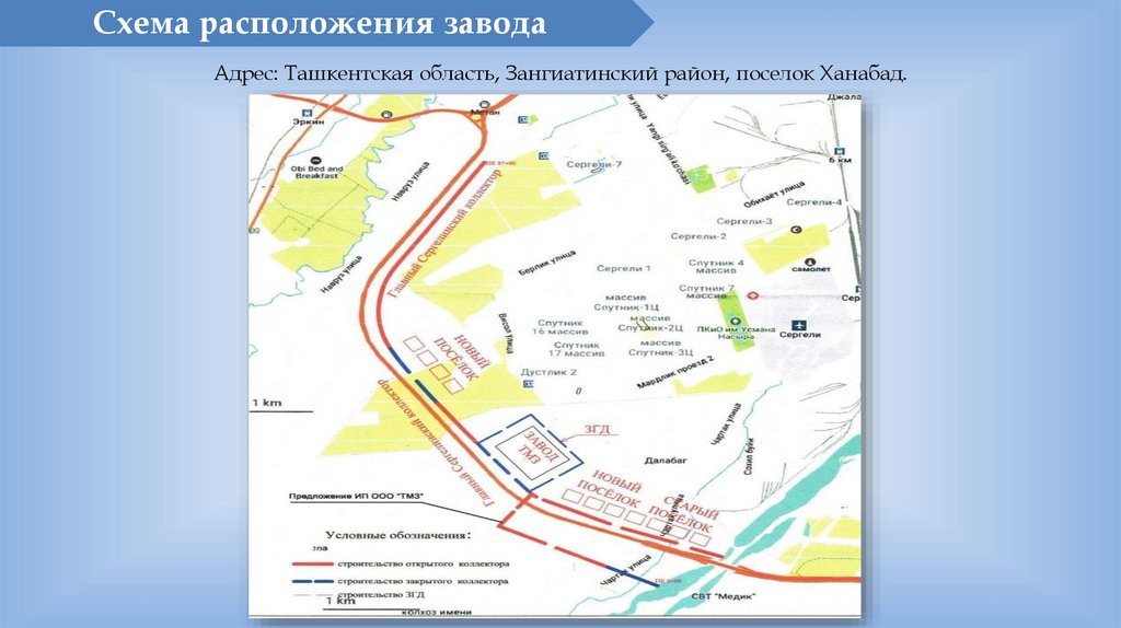 Схема расположения заводаАдрес: Ташкентская область, Зангиатинский район, поселок Ханабад.