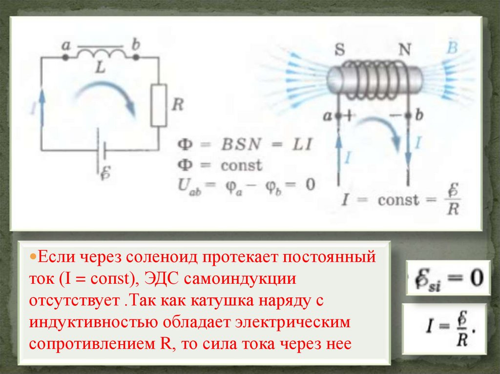Если через соленоид протекает постоянныйток (I = сопst), ЭДС самоиндукции