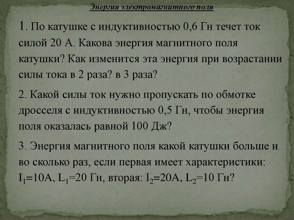 Энергия электромагнитного поля1. По катушке с индуктивностью 0,6 Гн течет ток