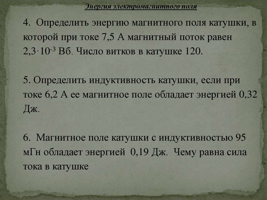Энергия электромагнитного поля4. Определить энергию магнитного поля катушки, в