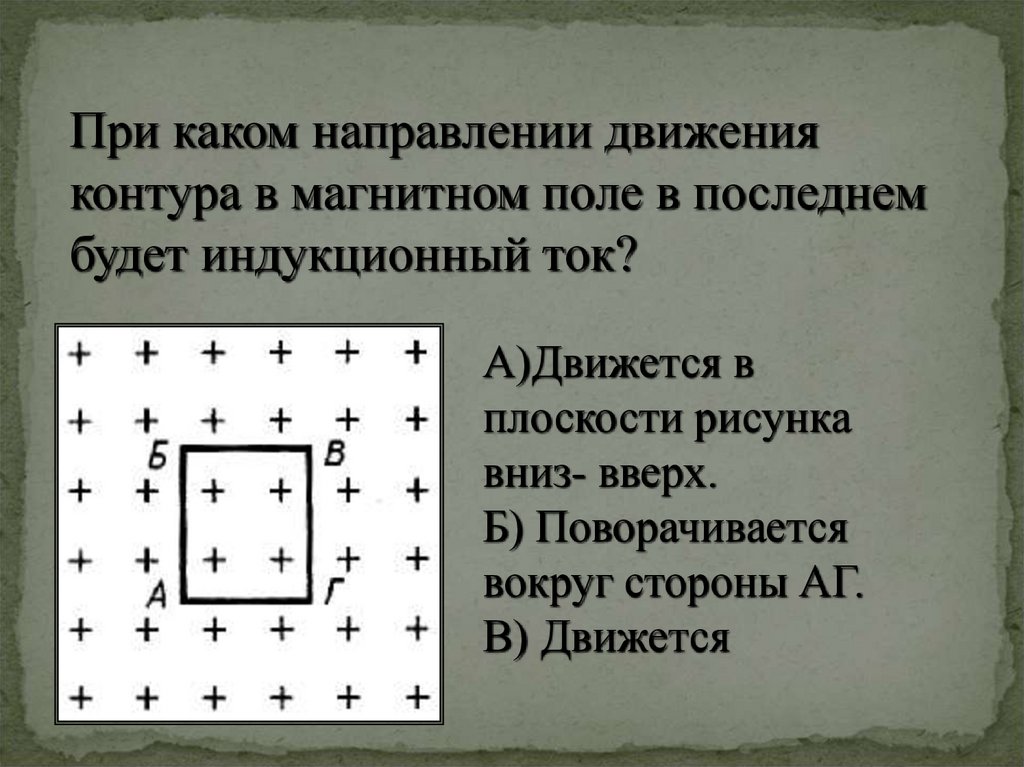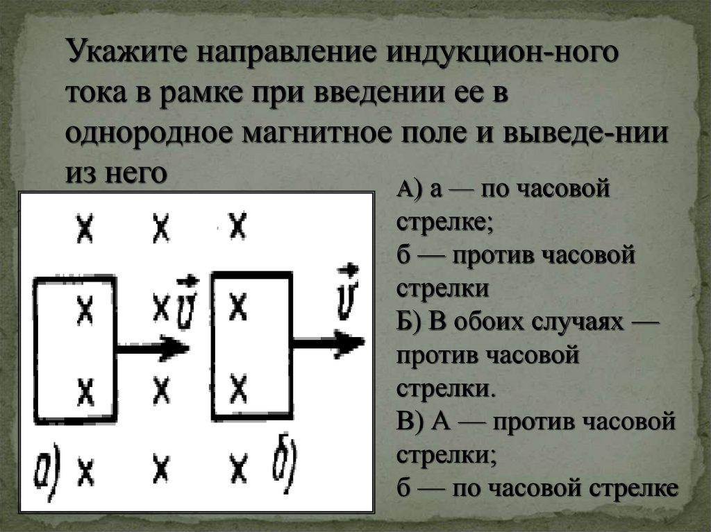 Укажите направление индукцион-ноготока в рамке при введении ее в