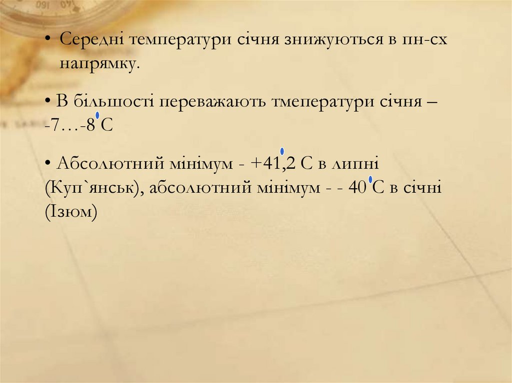 • Середні температури січня знижуються в пн-схнапрямку.